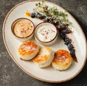 с яблоком, приготовленные на кокосовом масле, со сметаной и кремом из сгущеного молока